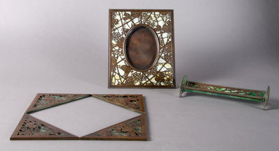 A Tiffany Studios Partial Bronze Desk Set, Grapevine,