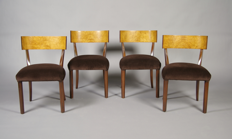 A Set of Four Swedish Birch and Walnut Klismos Chairs,
