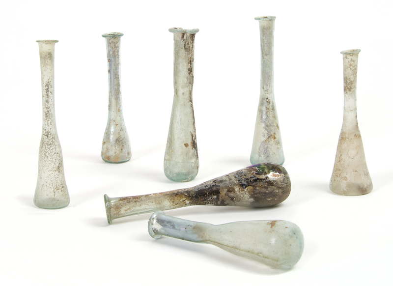 A Collection of Seven Roman Glass Unguentariums,