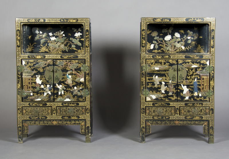 A Pair of Chinese Hardstone and Mother-of-Pearl Inset Cabinets,