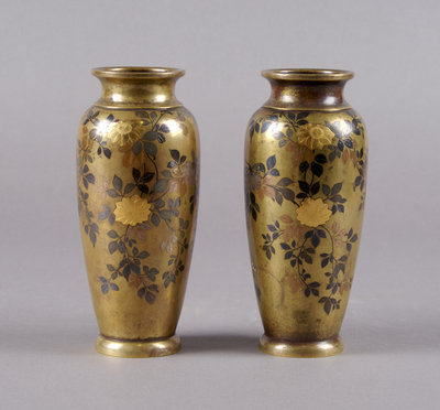 A Pair of Japanese Inlaid Bronze Vases,