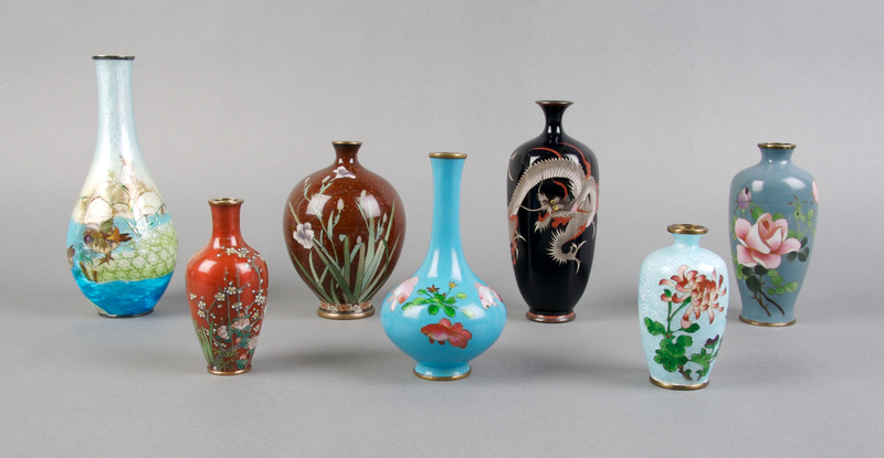 A Collection of Seven Japanese Cloisonne Cabinet Vases,