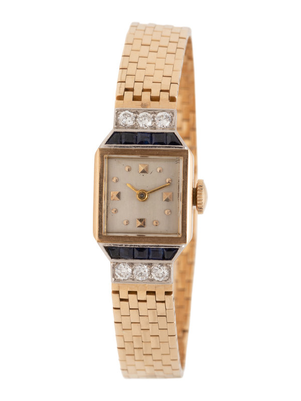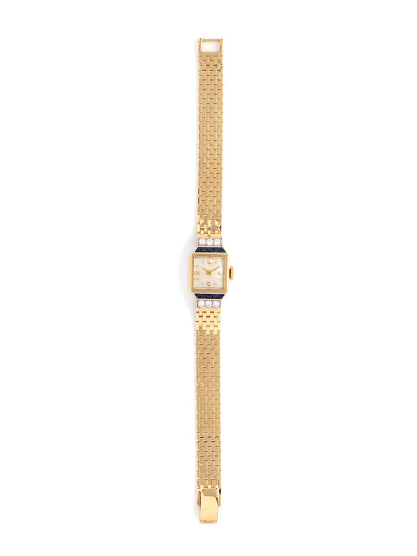 14K YELLOW GOLD, SYNTHETIC SAPPHIRE AND DIAMOND WRISTWATCH