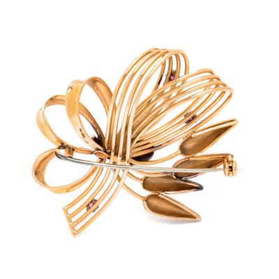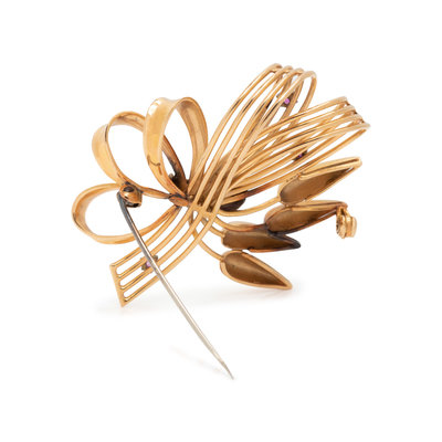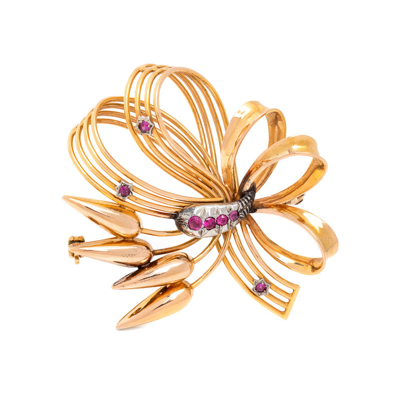 RETRO, BICOLOR GOLD AND RUBY BROOCH