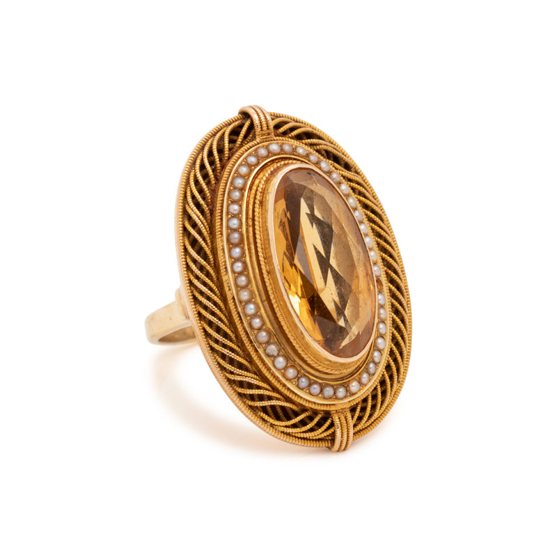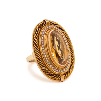 YELLOW GOLD, CITRINE AND SEED PEARL RING