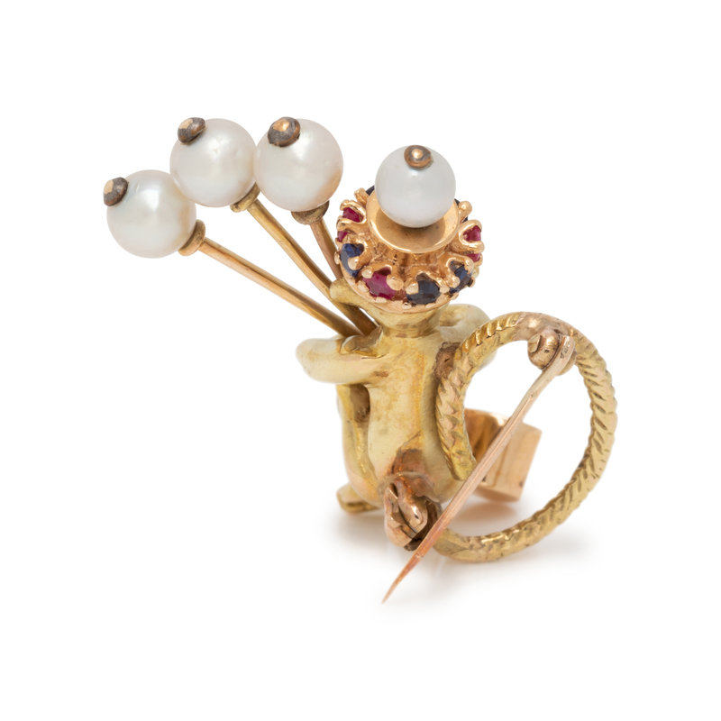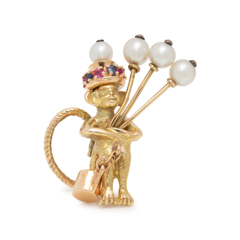 YELLOW GOLD AND MULTIGEM MONKEY BROOCH
