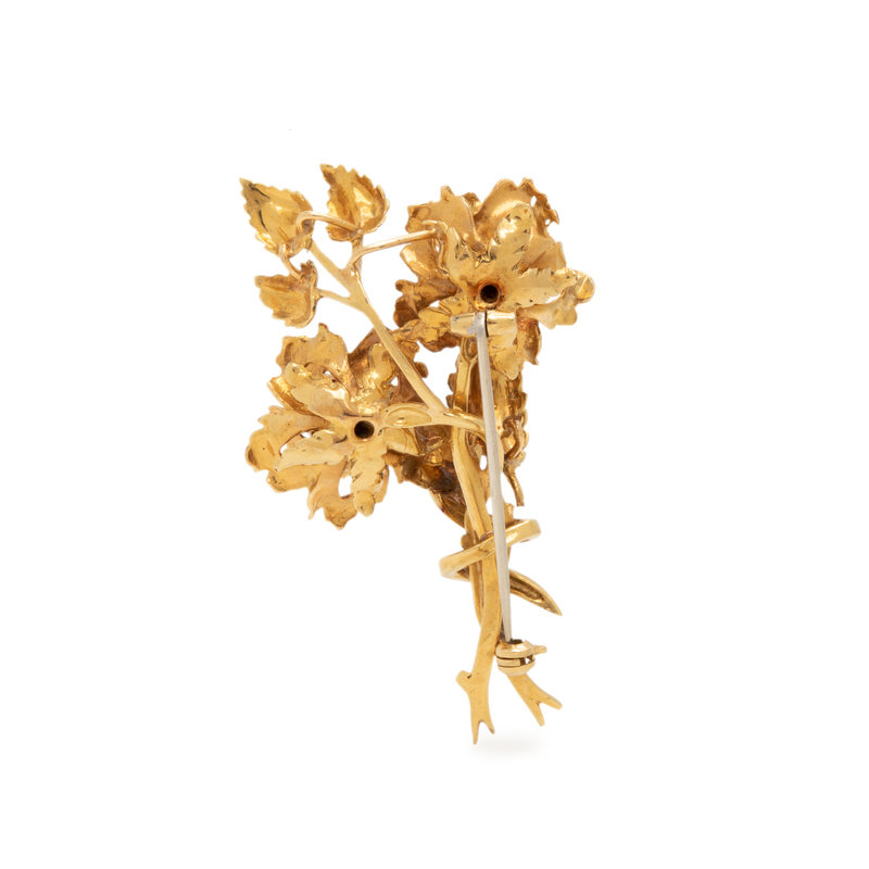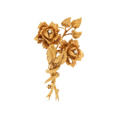 YELLOW GOLD AND DIAMOND FLOWER BROOCH