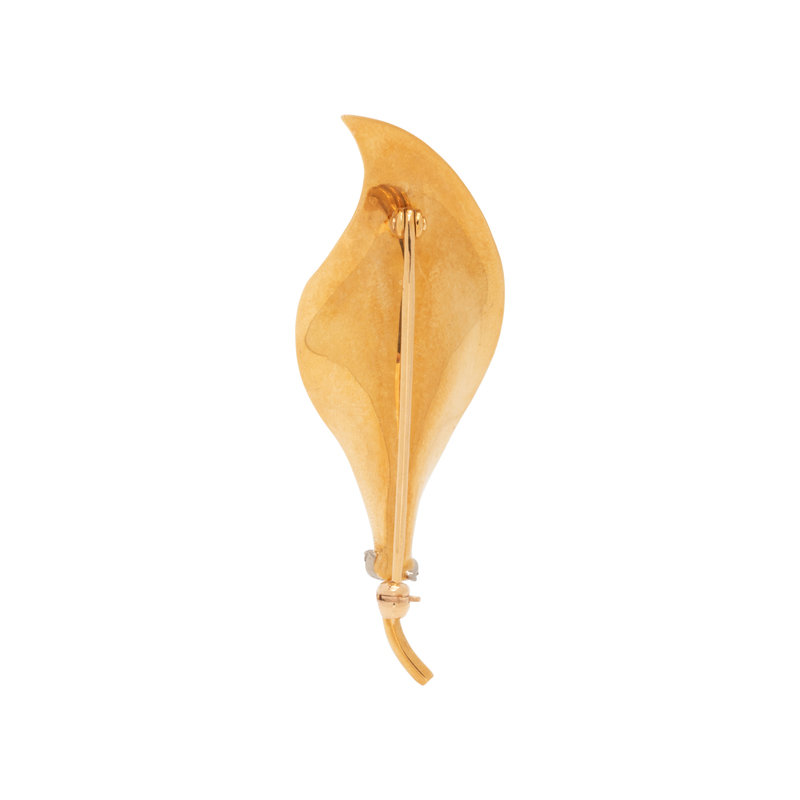 YELLOW GOLD AND DIAMOND LEAF BROOCH