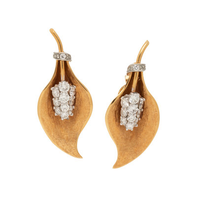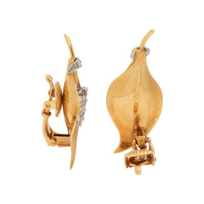 YELLOW GOLD AND DIAMOND LEAF EARCLIPS
