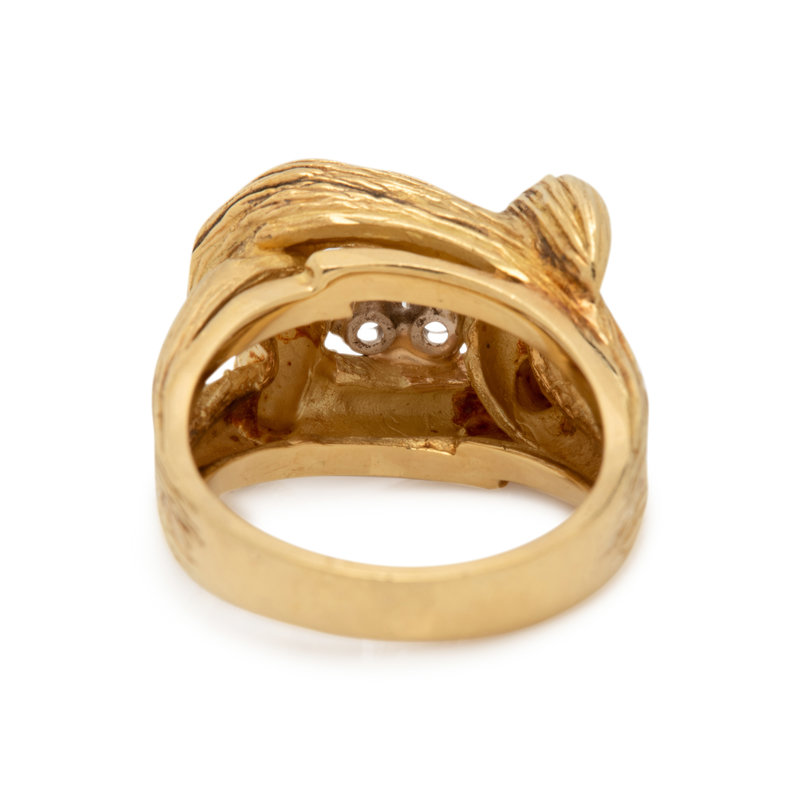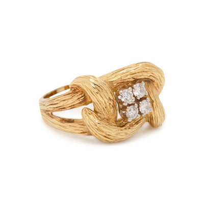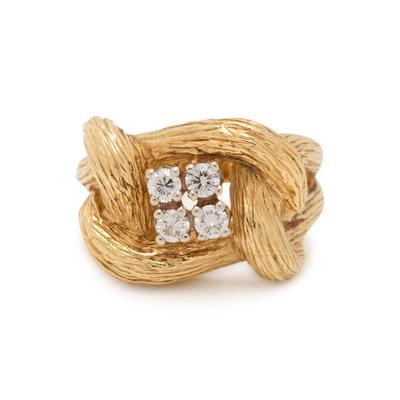 Containing four round brilliant cut diamonds weighing approximately 0.35 carat total. Ring size 5 3/4.