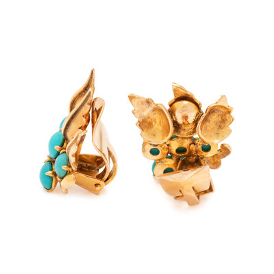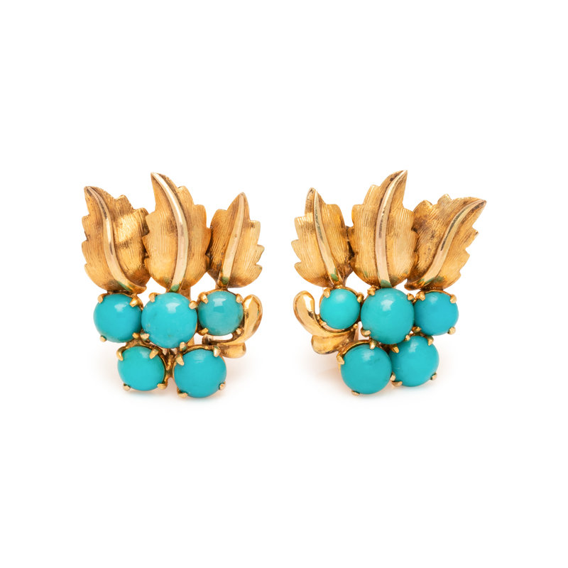 YELLOW GOLD AND TURQUOISE EARCLIPS