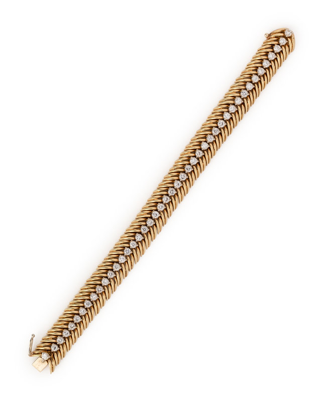 Containing 44 round brilliant cut diamonds weighing approximately 2.50 carats total. 6 1/2 inches long.