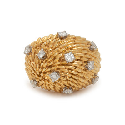 YELLOW GOLD AND DIAMOND BOMBE RING