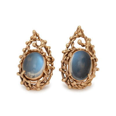 YELLOW GOLD AND MOONSTONE EARCLIPS