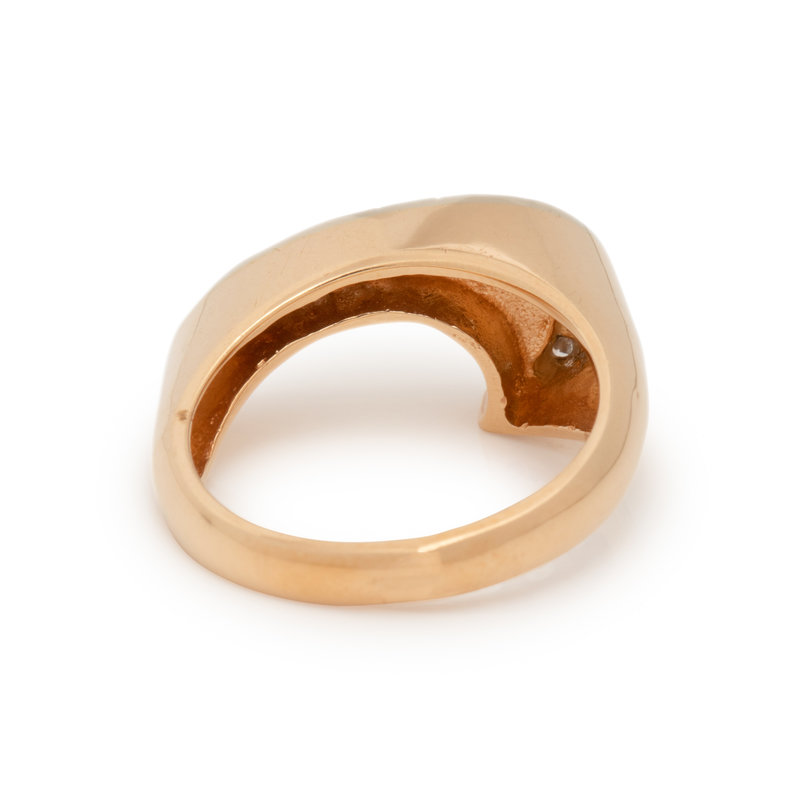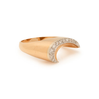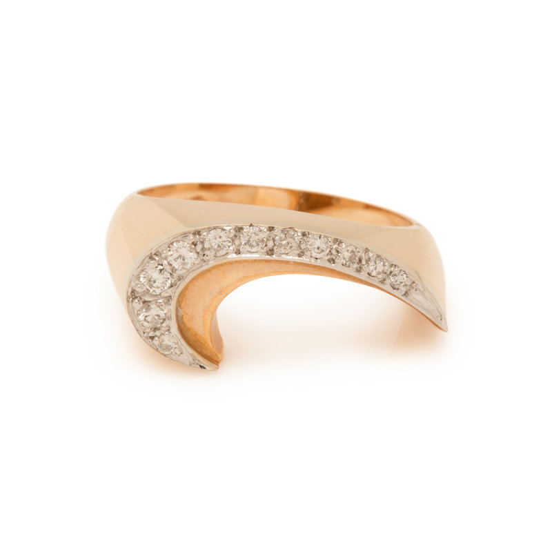 In a structural design, containing 11 round brilliant cut diamonds. Ring size 6 1/4.