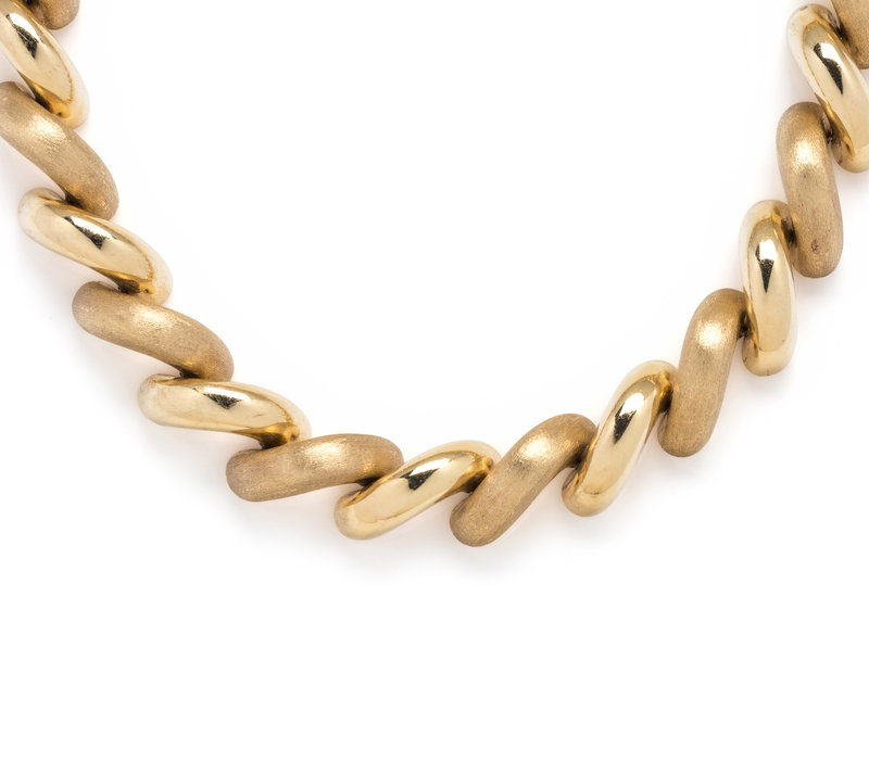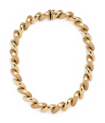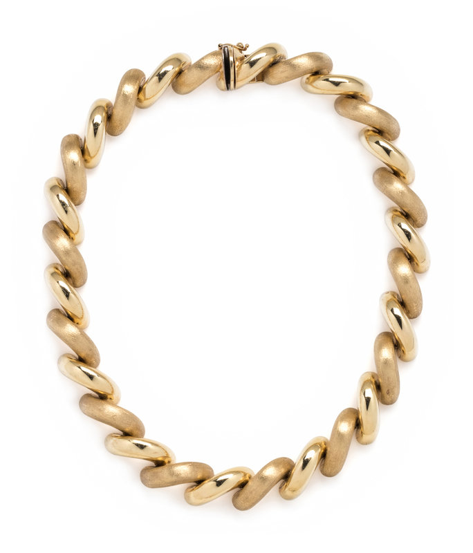 Consisting of an alternating brushed and polished San Marco link chain measuring approximately 15.00 mm wide. 18 inches long.