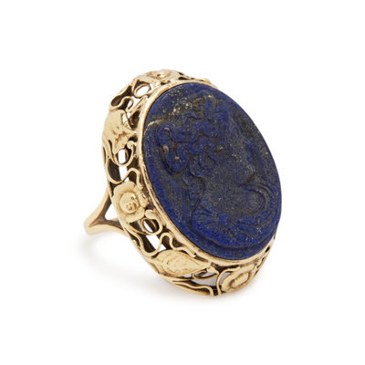 YELLOW GOLD AND LAPIS LAZULI CAMEO RING