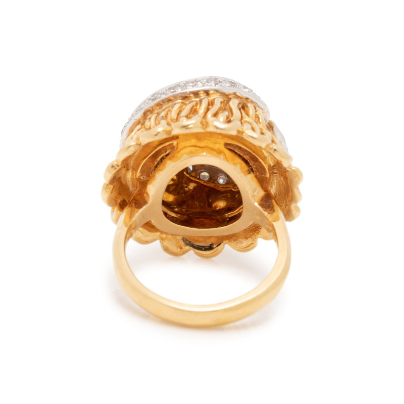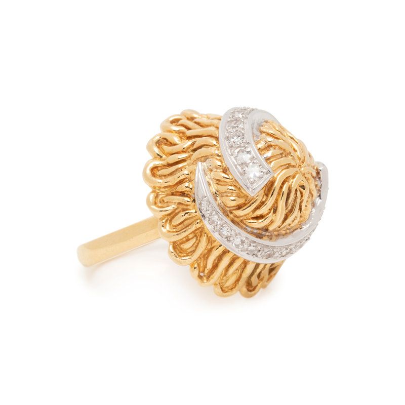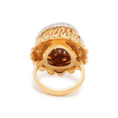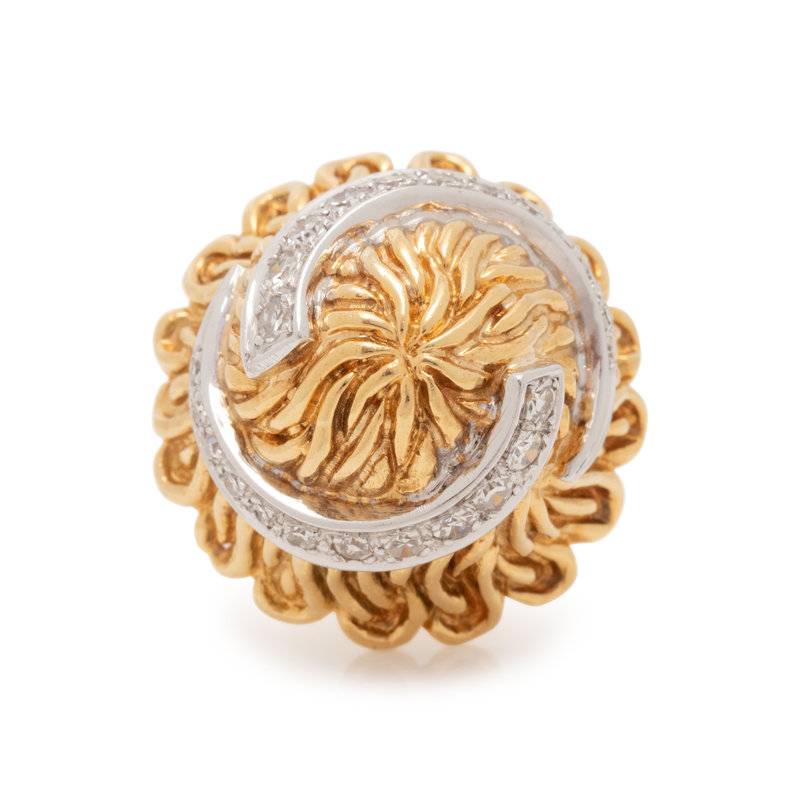 In a textured bombe design, containing 24 single cut diamonds. Ring size 5 1/2.