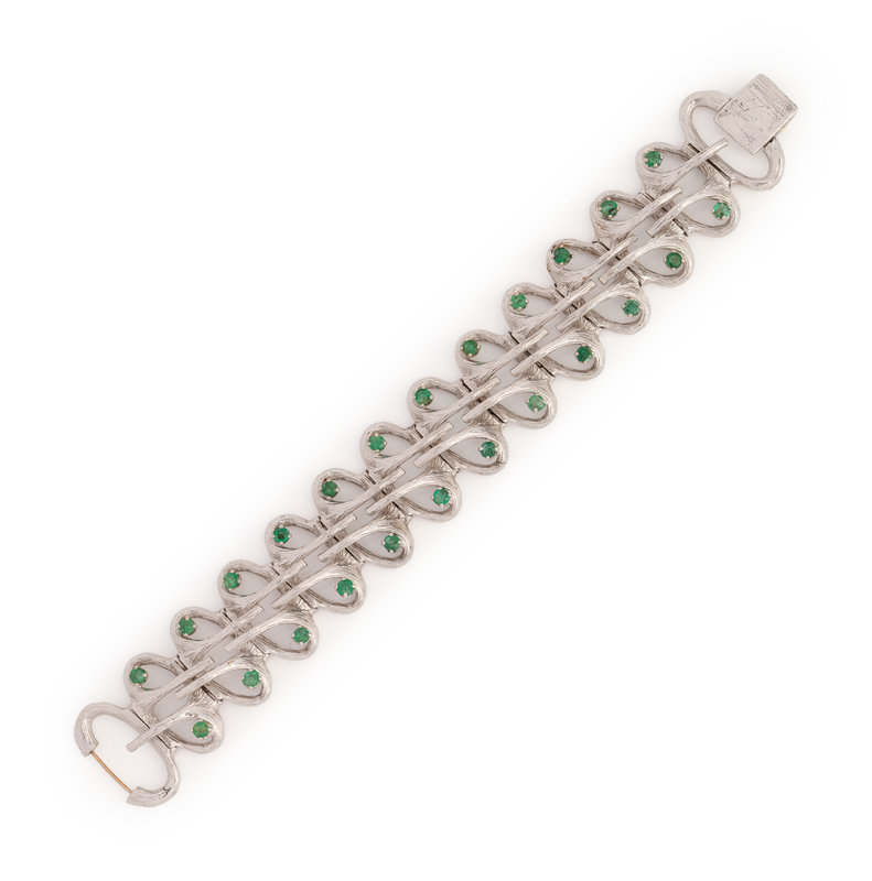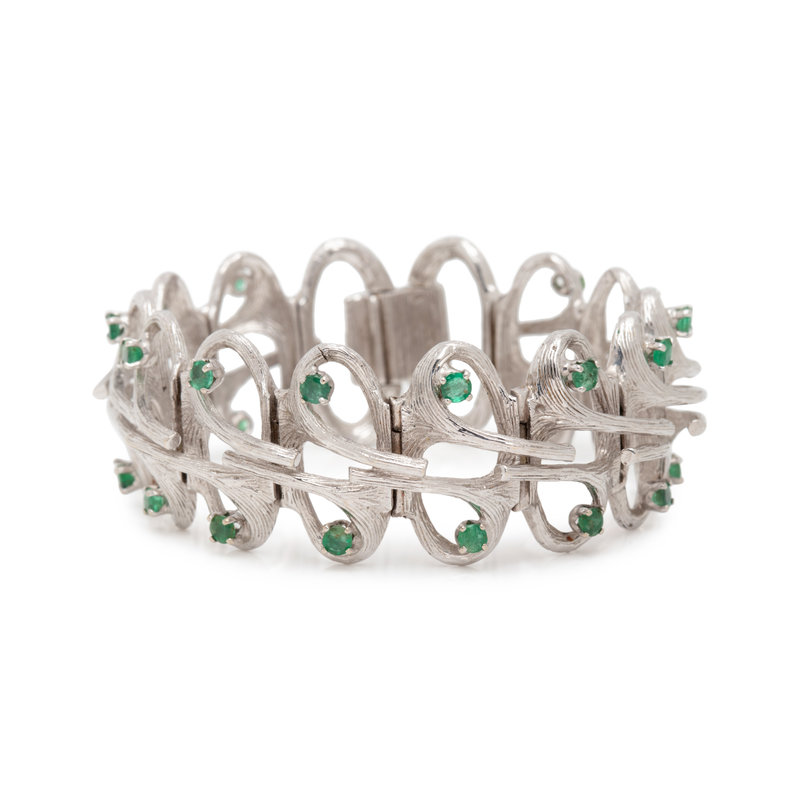 Consisting of a textured design with 24 round mixed cut emeralds measuring approximately 3.00 mm. 6 3/4 inches long.