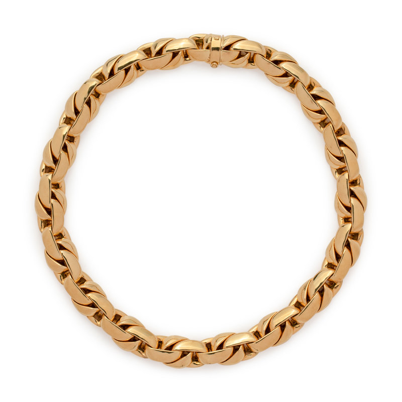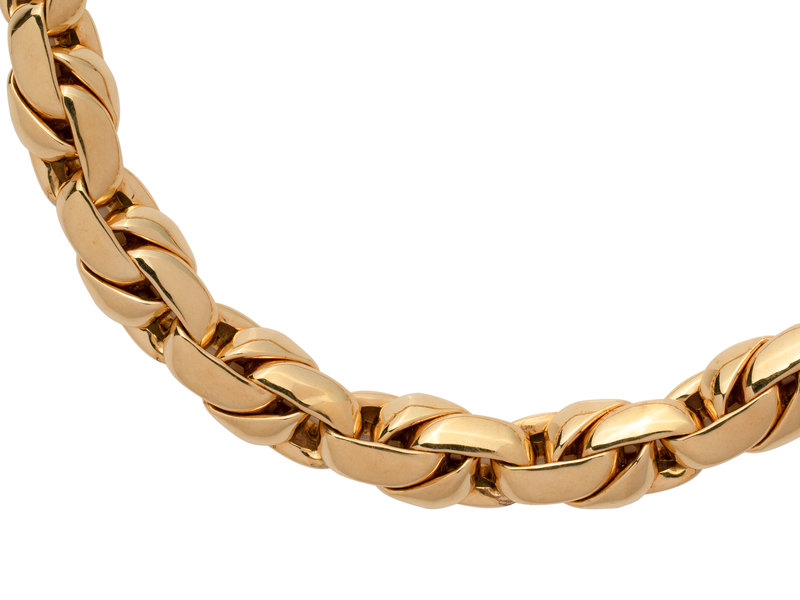 Consisting of a fancy link chain measuring approximately 14.50 mm wide. 16 1/2 inches long.