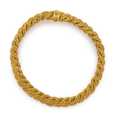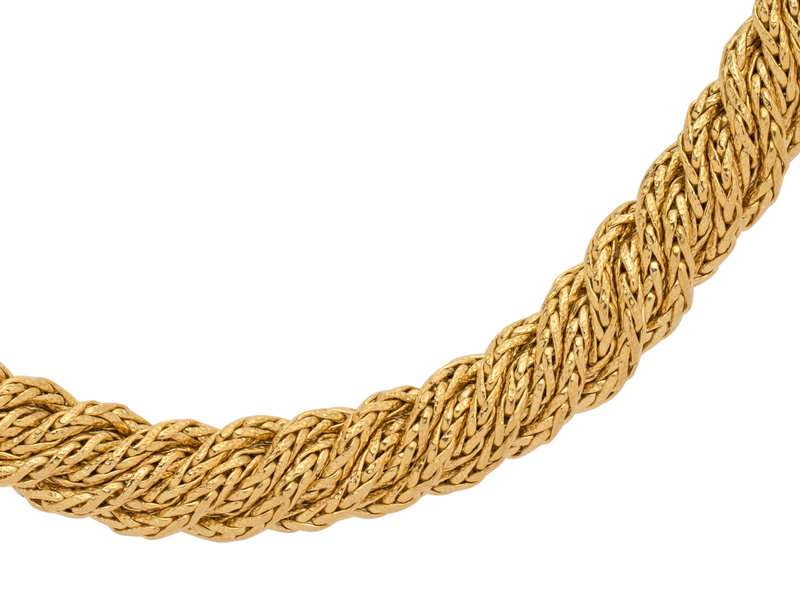 Consisting of twisted textured wheat chains measuring approximately 14.00 mm wide. 13 3/4 inches long.