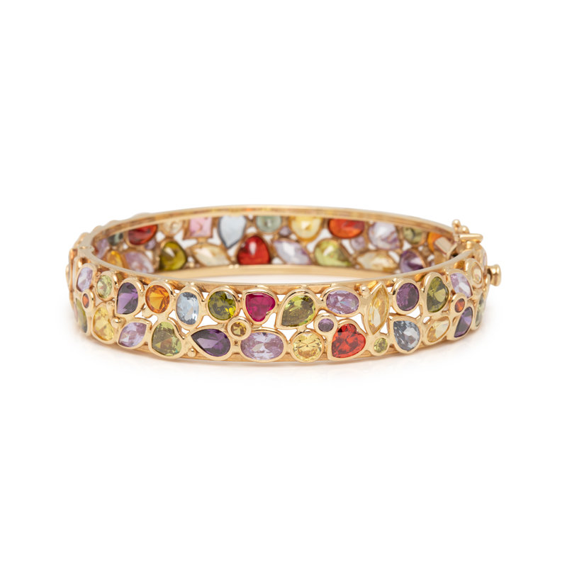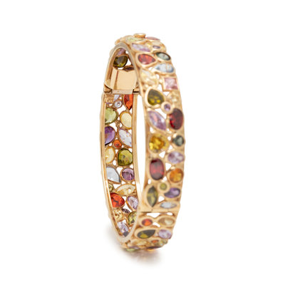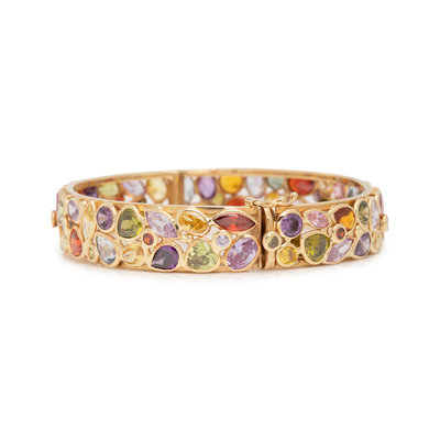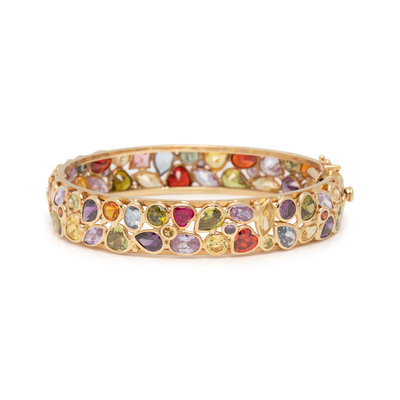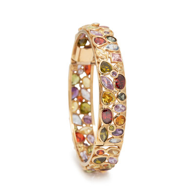 YELLOW GOLD AND MULTIGEM BANGLE BRACELET