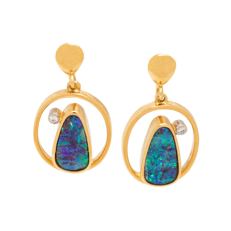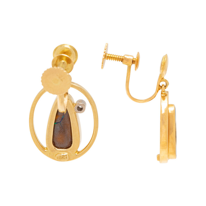 YELLOW GOLD, OPAL AND DIAMOND EARCLIPS