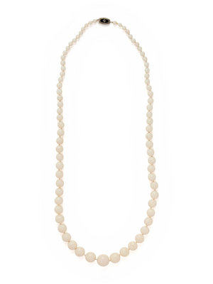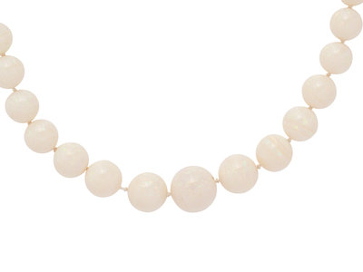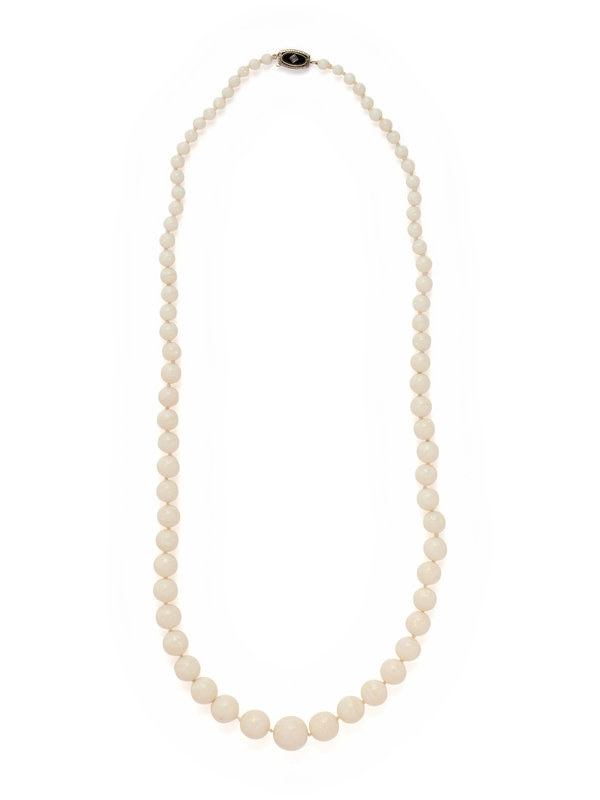 Containing graduating round opal beads measuring approximately 4.30-13.90 mm in diameter, strung knotted with white gold and onyx clasp. 25 1/2 inches long.