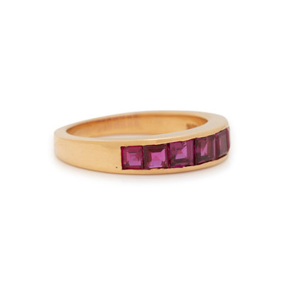 OSCAR HEYMAN, YELLOW GOLD AND RUBY RING