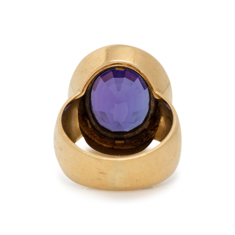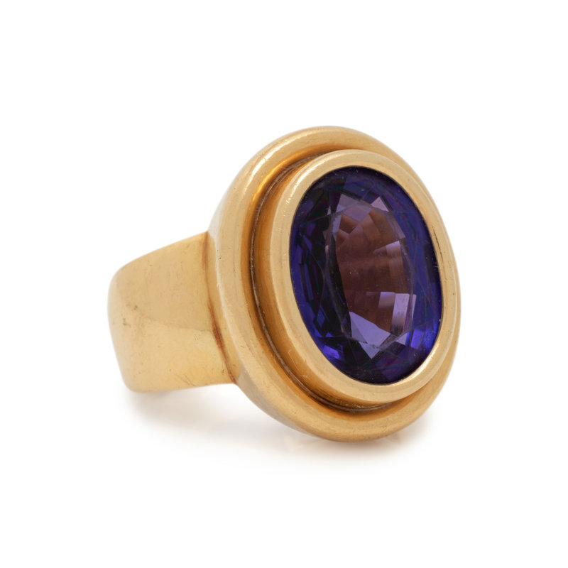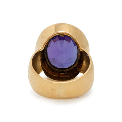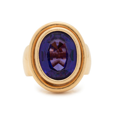 Containing one oval mixed cut tanzanite measuring approximately 14.85 x 11.35 x 7.85 mm. Ring size 6 1/4.