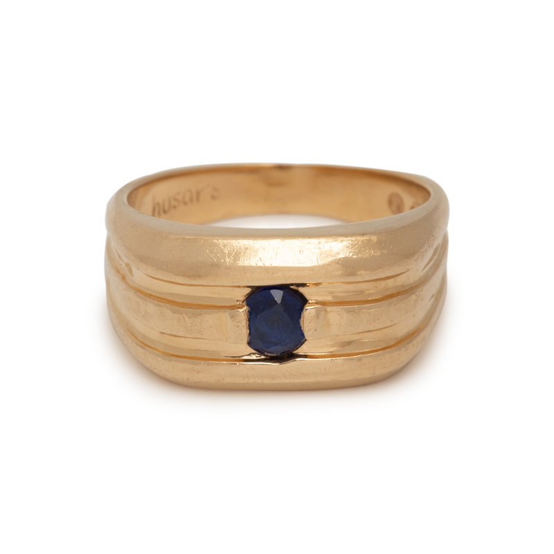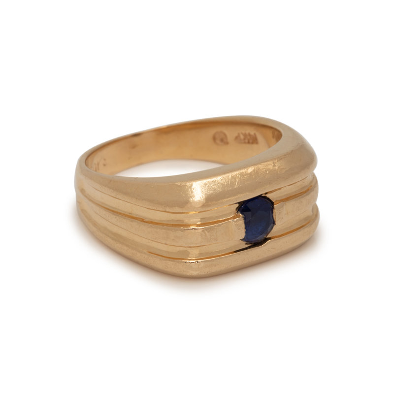 YELLOW GOLD AND TREATED SAPPHIRE RING