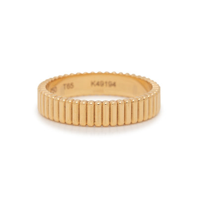 Consisting of a ridged design measuring approximately 4.95 mm wide. Ring size 10 3/4.
