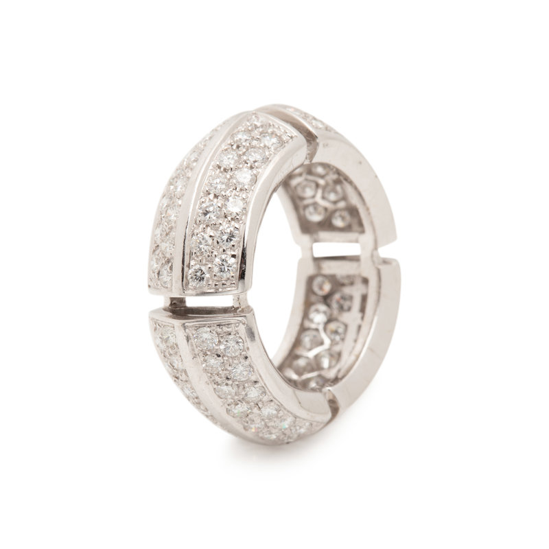 Containing 104 round brilliant cut diamonds weighing approximately 1.30 carats total. Ring size 6.
