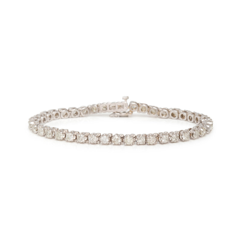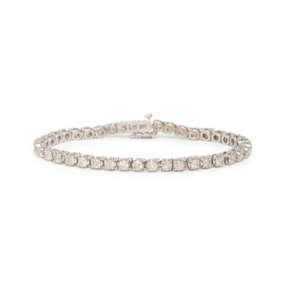 Containing 40 round brilliant cut diamonds weighing approximately 4.80 carats total. Mounted in white gold. 7 inches long.