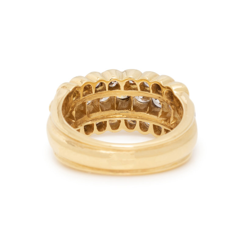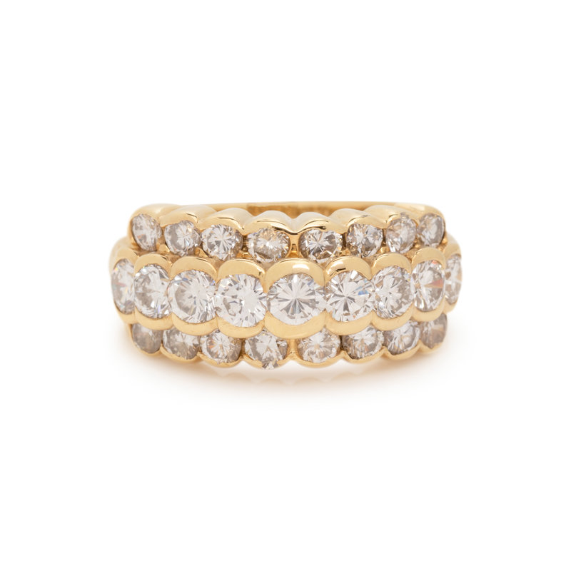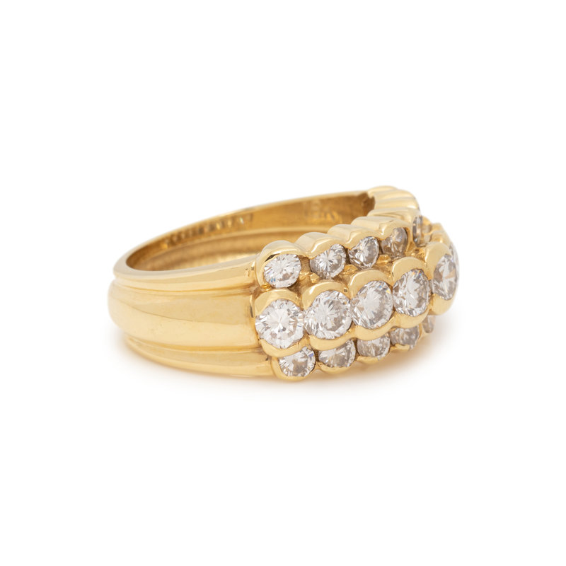 Containing 25 round brilliant cut diamonds weighing approximately 2.45 carats total. Mounted in yellow gold. Ring size 7 1/4.