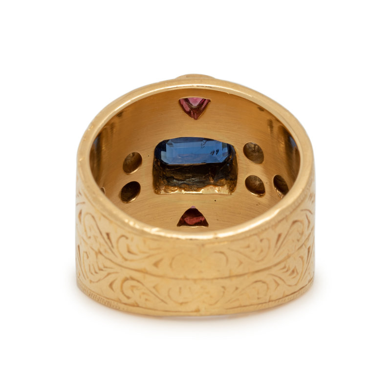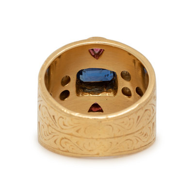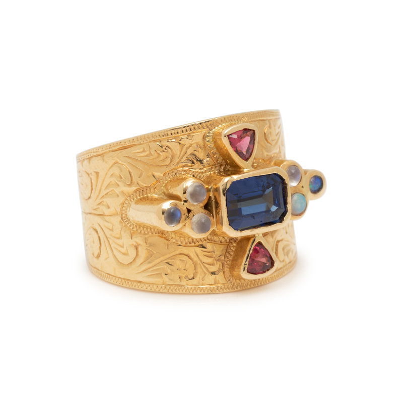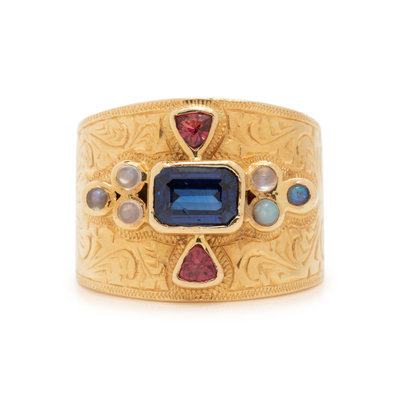 PAULA CREVOSHAY, YELLOW GOLD AND MULTIGEM RING