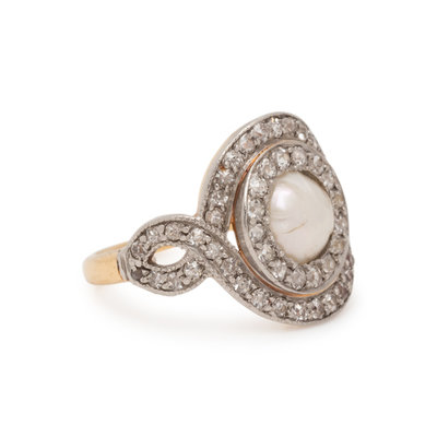 ANTIQUE, PEARL AND DIAMOND RING