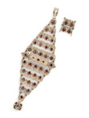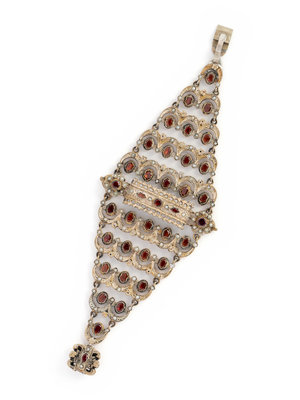 ANTIQUE, ENAMEL, SEED PEARL AND GARNET BRACELET
