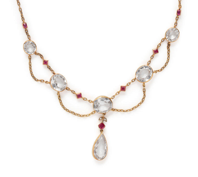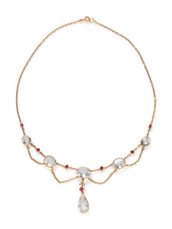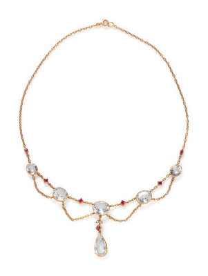 ANTIQUE, YELLOW GOLD, TOPAZ, RUBY AND DIAMOND NECKLACE