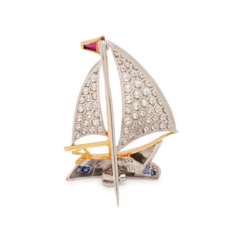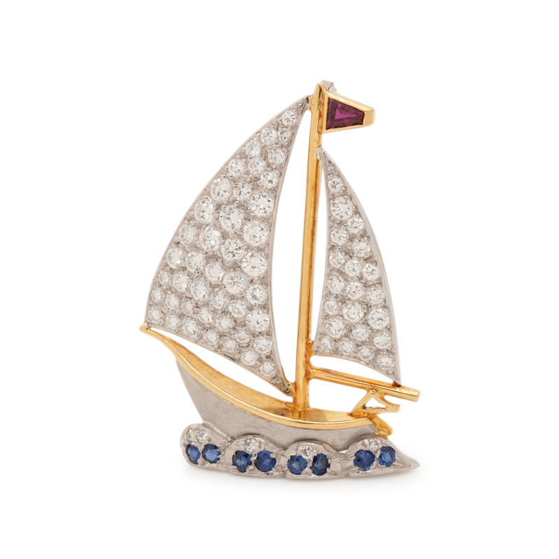 DIAMOND AND GEMSTONE SAILBOAT BROOCH