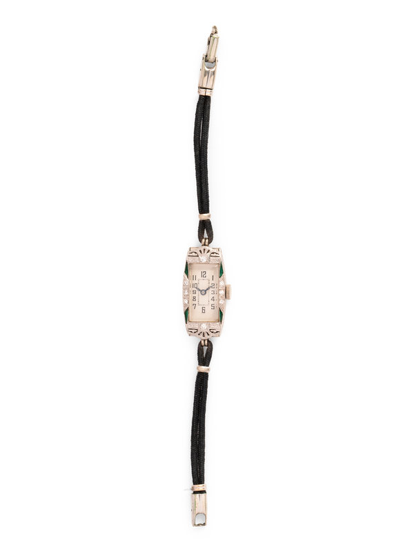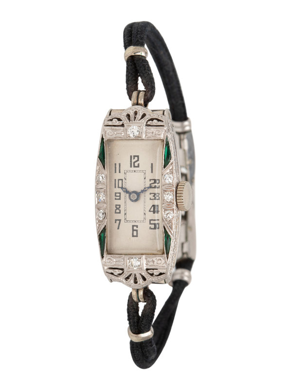 ART DECO, PLATINUM AND DIAMOND WRISTWATCH