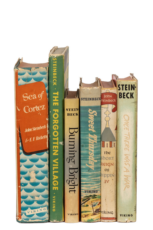 STEINBECK, John and Edward F. RICKETTS. Sea of Cortez. 1941. Goldstone & Payne A15b. -- Burning Bright. 1950. Goldstone & Payne A29a. -- Sweet Thursday. 1954. Goldstone & Payne A33b. -- The Short Reign of Pippin IV, A Fabrication. 1957. Goldstone & Payne A36a. -- Once There Was a War. 1958. Goldstone & Payne A37a. -- And one other. Together, 6 works in 6 volumes, all published in New York by the Viking Press, 8vo, all in original bindings, all FIRST EDITIONS, condition generally fine.
