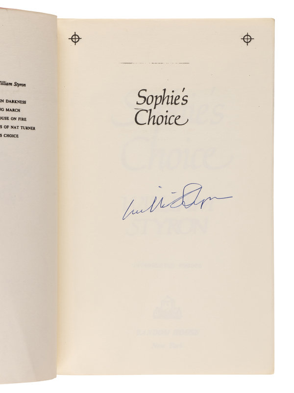 Sophie's Choice. NY, 1979. Original printed red wrappers. UNCORRECTED PROOF, SIGNED BY STYRON. -- Lie Down in Darkness. Indianapolis et al, 1951. Original brown cloth gilt; in unrestored and unclipped dust jacket. WITH STYRON'S SIGNATURE on a slip laid in. -- Admiral Robert Penn Warren and The Snows of Winter a Tribute. Winston-Salem, NC, 1978. Illustrated. Original wrappers. LIMITED EDITION, number 143 of 276 copies. SIGNED BY STYRON. -- Together, 3 works in 3 volumes, various 8vo sizes, ALL FIRST EDITION, condition generally good.