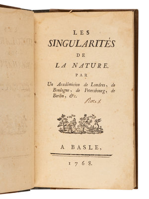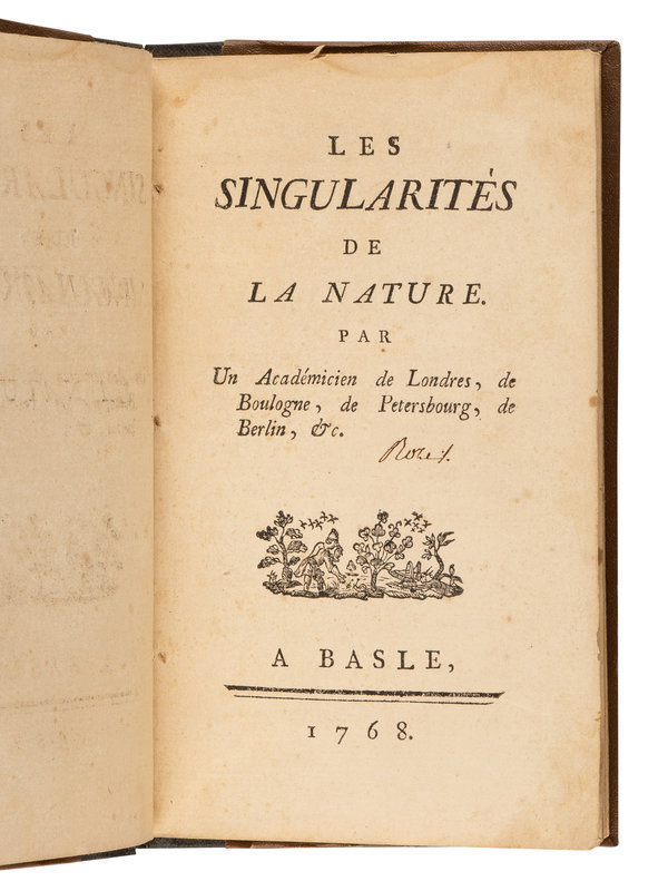 VOLTAIRE, Francois Marie Arouet de (1694-1778). Les singularités de la nature. Basel [but Geneva]: [Cramer], 1768.