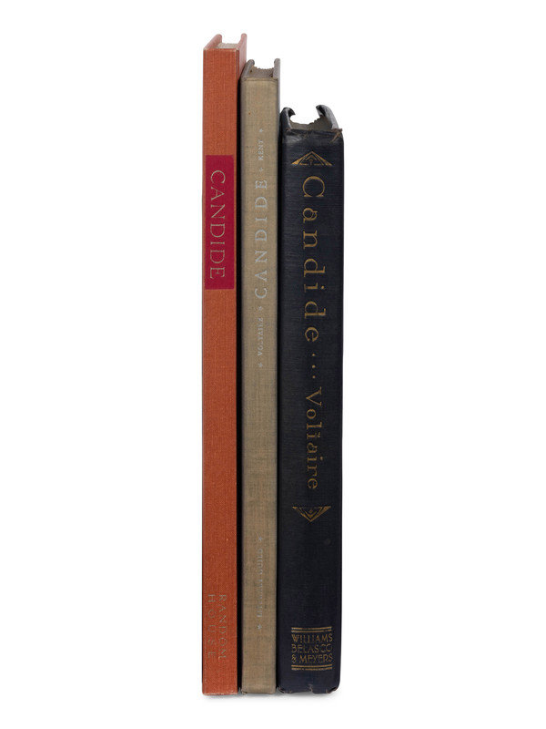 KENT, Rockwell, illustrator. Candide. NY: Random House for The Literary Guild, 1929. -- KENT, Rockwell, illustrator. Candide. NY: Random House, 1975. -- MOREAU, Adrien, illustrator. Candide. NY: Williams, Belasco and Meyers, 1930. -- Together, 3 works in 3 volumes, 4to, original cloth, condition generally fine.