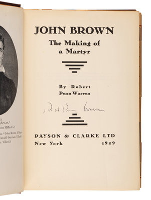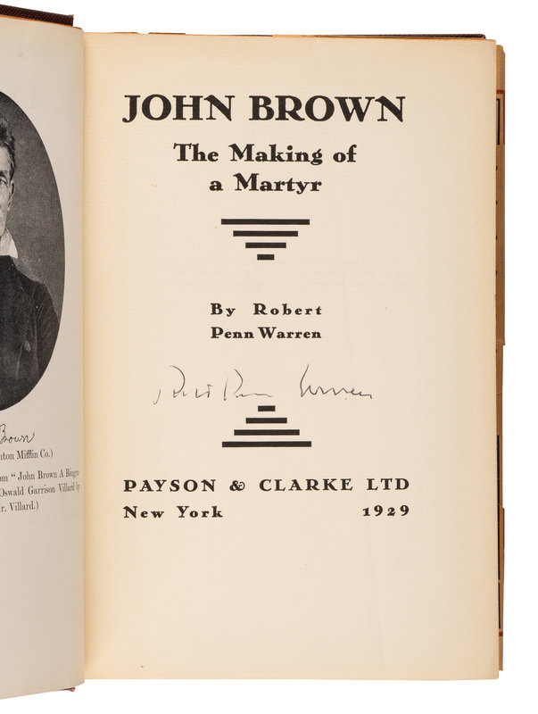 WARREN, Robert Penn (1905-1989). John Brown: The Making of a Martyr. New York: Payson & Clarke Ltd., 1929.