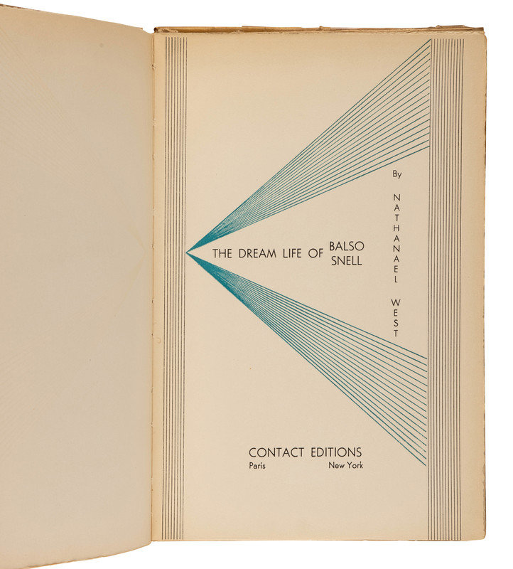 WEST, Nathanael (1903-1944). The Dream Life of Balso Snell. Paris & NY: Contact Editions, 1931.