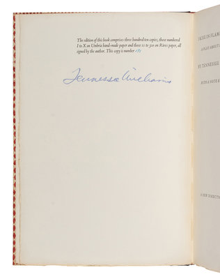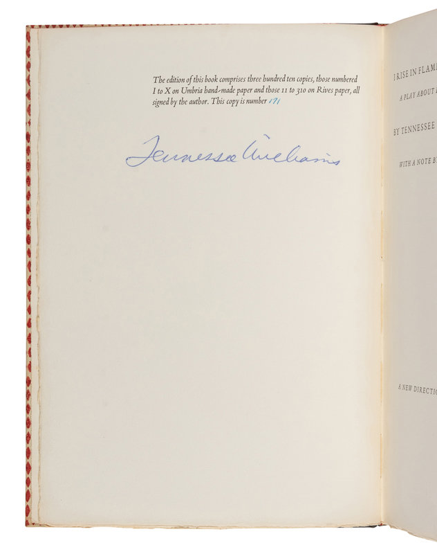 WILLIAMS, Tennessee (1911-1983). I Rise in Flame, Cried the Phoenix. A Play about D.H. Lawrence. New York: New Directions, 1951.