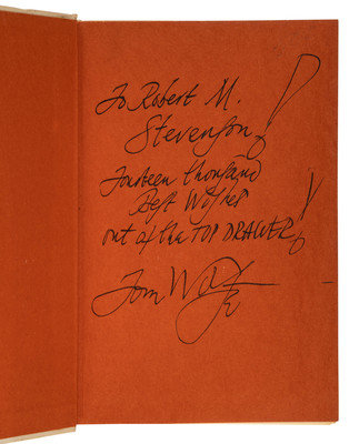 Kandy-Kolored Tangerine-Flake Streamline Baby. 1965. Fourth issue. PRESENTATION COPY, INSCRIBED BY WOLFE. -- The Purple Decades. 1982. PRESENTATION COPY, INSCRIBED BY WOLFE. -- In Our Time. 1980. SIGNED BY WOLFE. -- Together, 3 works in 3 volumes, all published in New York by Farrar, Straus and Giroux, various 4to and 8vo sizes, all in original cloth or quarter cloth, all in unrestored and unclipped dust jackets, ALL FIRST EDITION, most FIRST ISSUE, condition generally good.