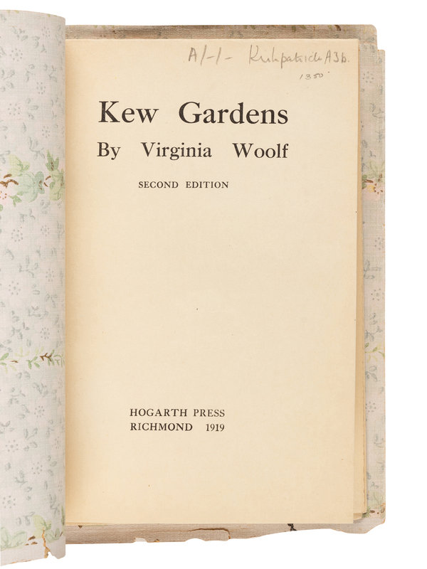 WOOLF, Virginia (1882-1941). Kew Gardens. Richmond: Hogarth Press, 1919.